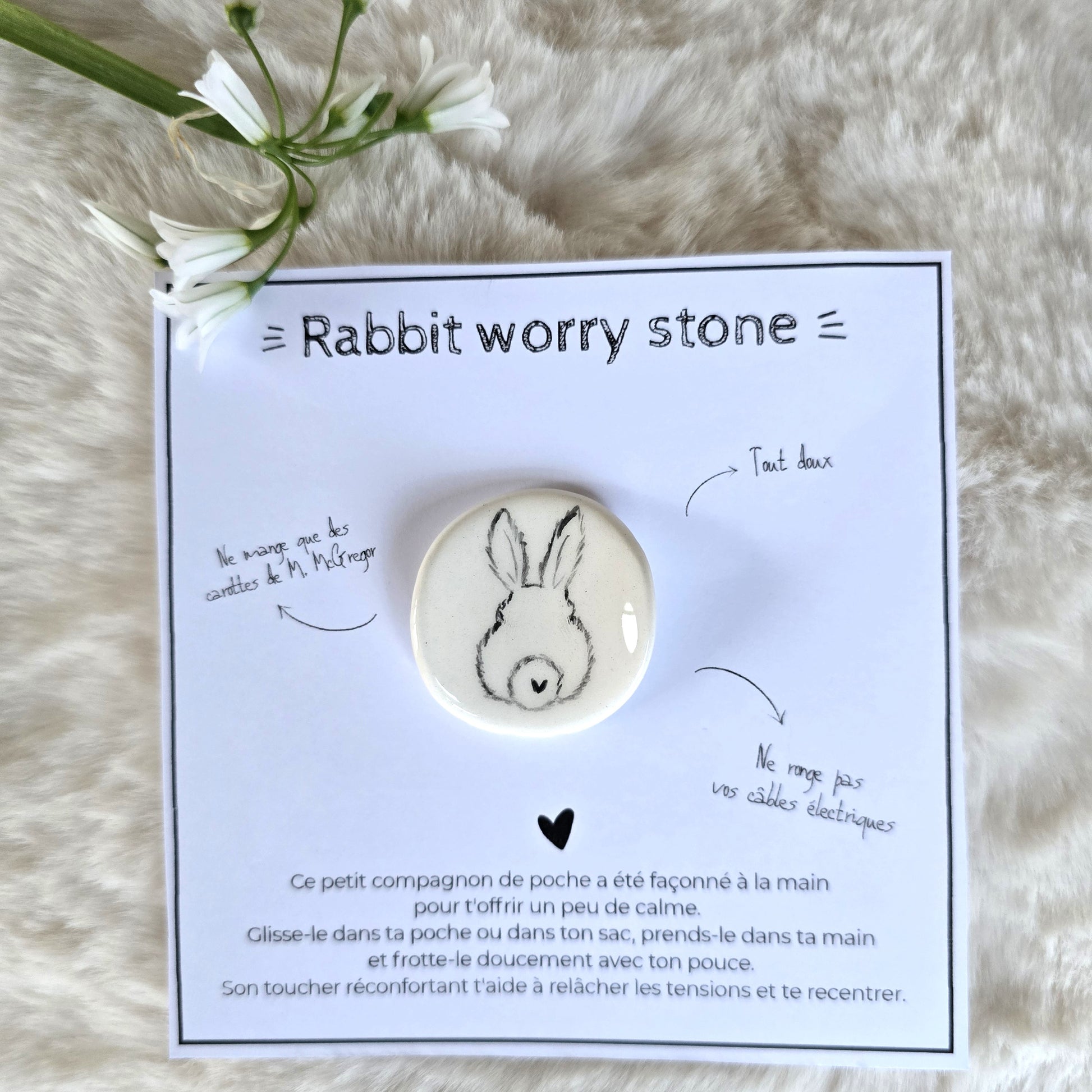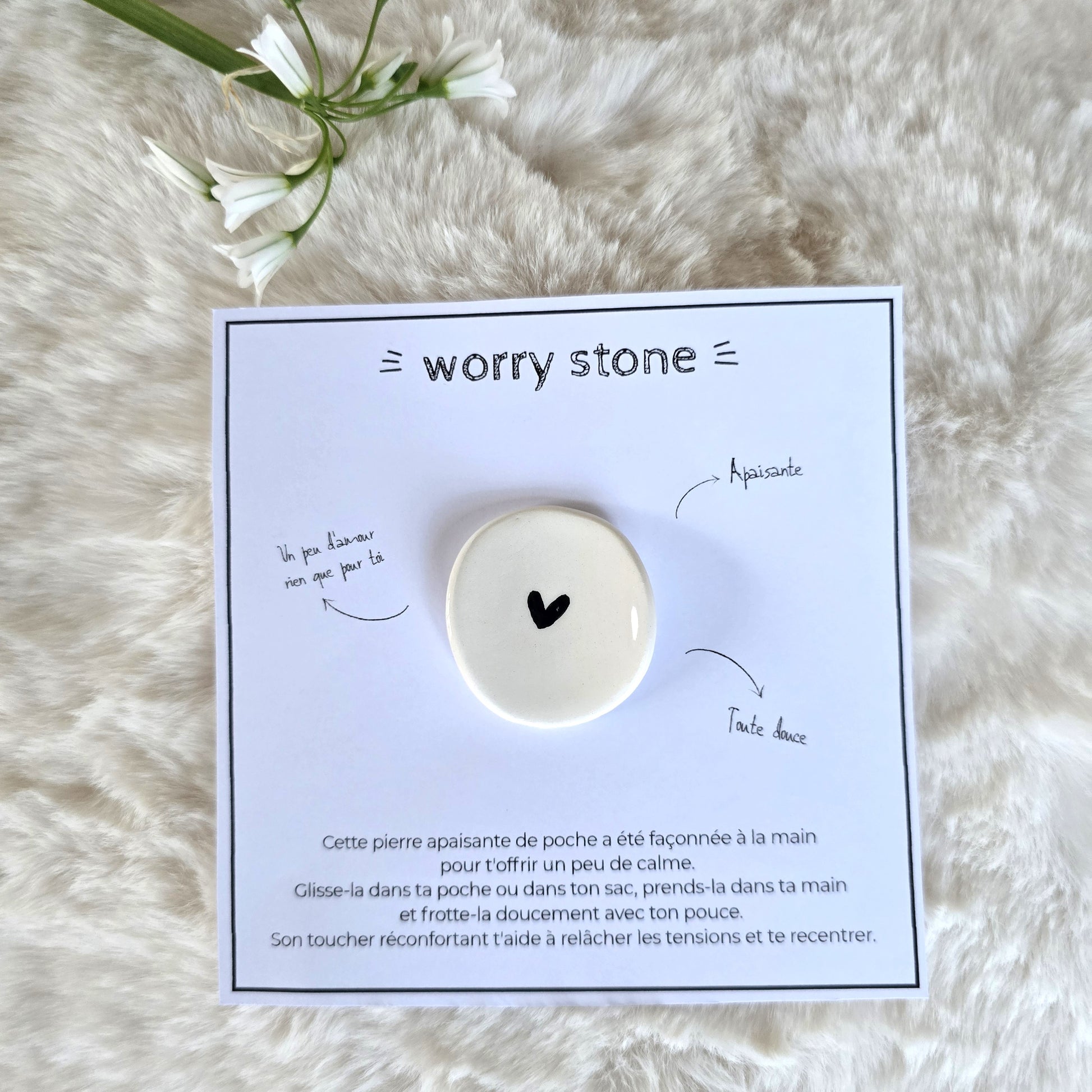 Ce petit compagnon de poche a été façonné à la main pour t'offrir un peu de calme.